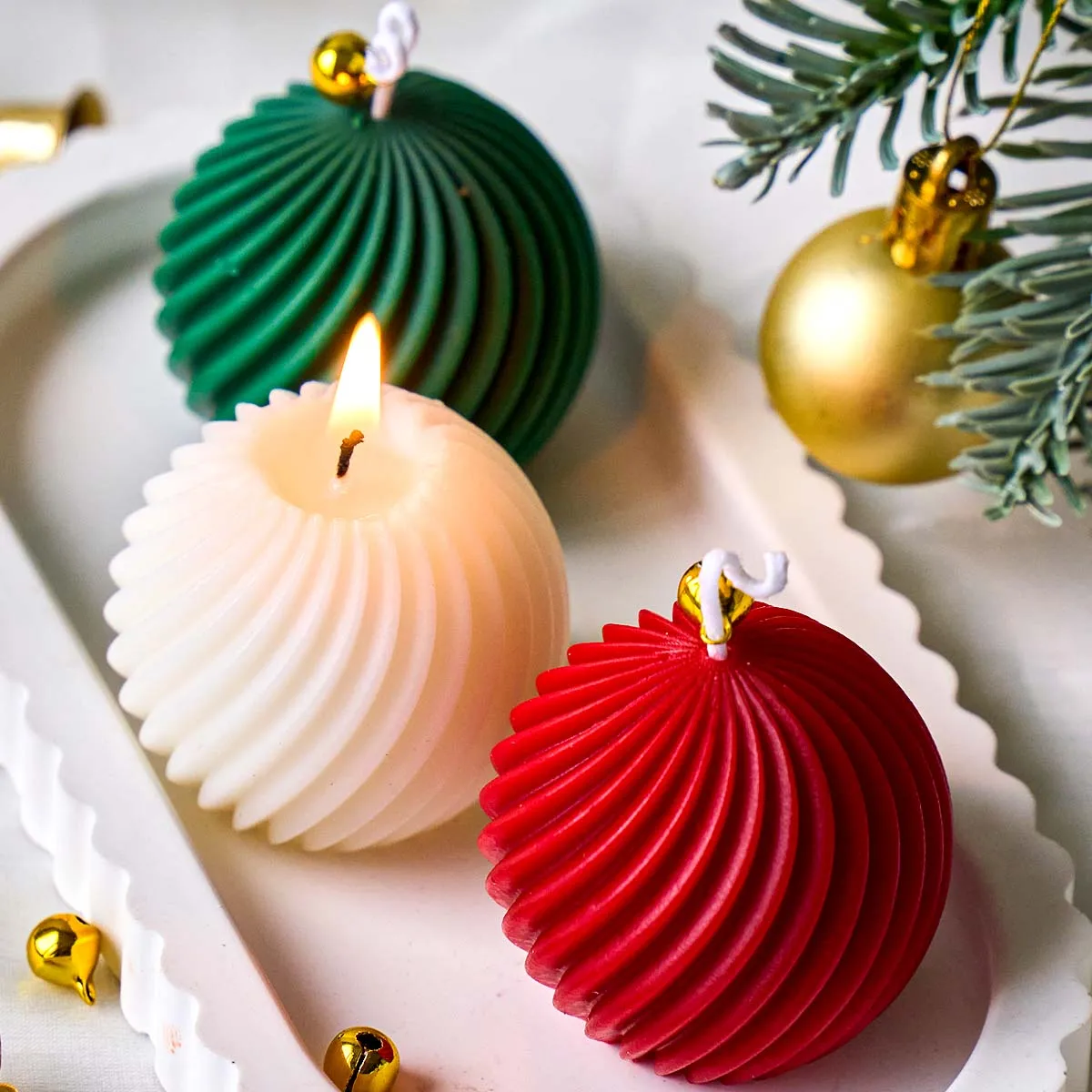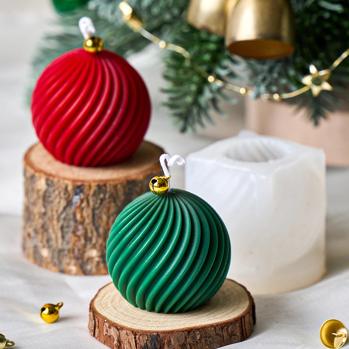 MerryMold is a 3D silicone mold designed for creating beautiful, handmade Christmas ball candles and soaps. With intricate twist stripe patterns, it allows you to craft personalized festive décor, gifts, and holiday-themed creations effortlessly.