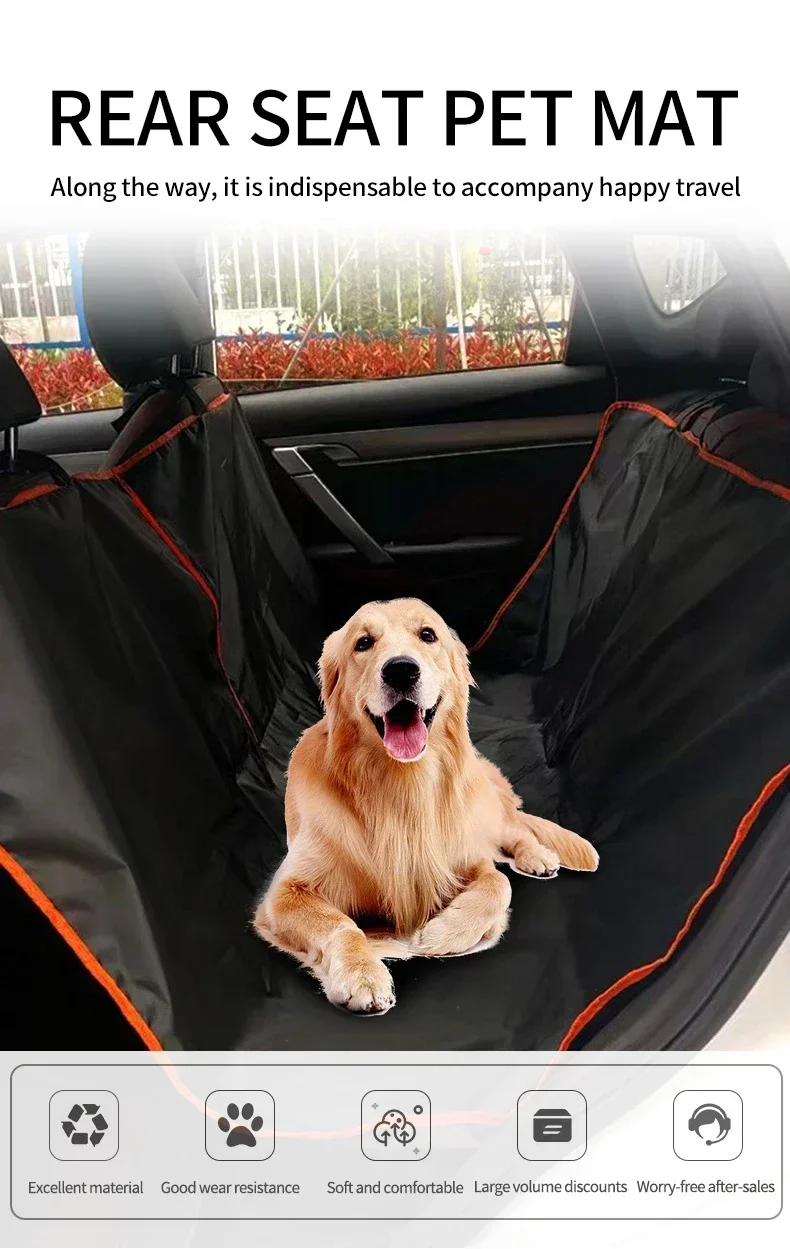 Oxford cloth pet hammock that protects your car’s back seat from scratches, hair, and dirt while keeping your dog comfortable.
